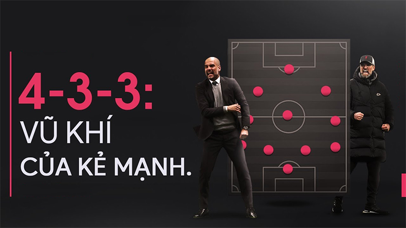 Nhờ vào việc có 3 cầu thủ tuyến đầu, đội hình 4-3-3 sẽ phù hợp nhất với những đội bóng có lối chơi quyết liệt, sẵn sàng đẩy cao đội hình và pressing đối phương.