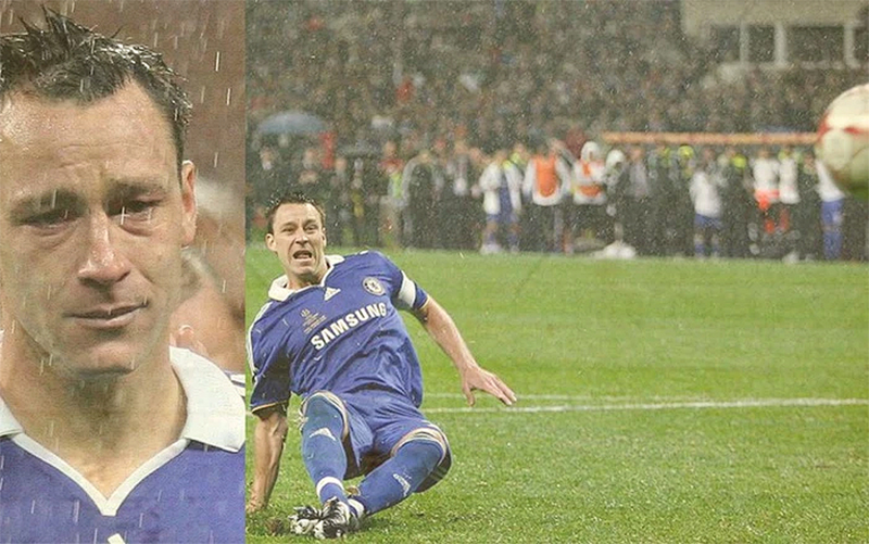 Để rồi, cơn mưa tại Moscow khiến đội trưởng John Terry trượt chân và đưa bóng đi ra ngoài. Tỷ số trên chấm luân lưu lúc này vẫn đang là 4-4. Người MU như “chết đi sống lại”.