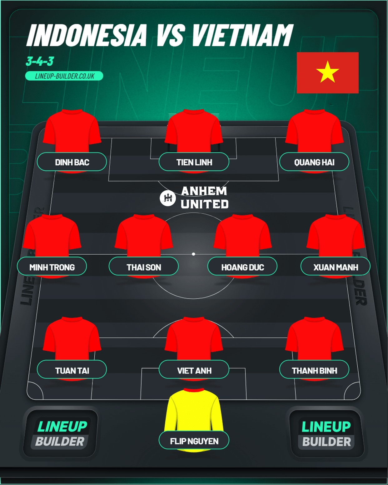 Qua bài học nói trên, nhiều khả năng ĐTVN sẽ thay đổi chuyển sang hệ thống phòng ngự phản công nhằm chờ đợi thời cơ trừng phạt sai lầm đối thủ. Trong khung gỗ là Filip Nguyễn, bộ ba trung vệ quen thuộc Tuấn Tài, Việt Anh và Thanh Bình. Với Thanh Bình, nếu được lựa chọn, đây sẽ là cơ hội quý giá hơn bao giờ hết để cầu thủ sinh năm 2000 chứng tỏ bản thân sau quá nhiều sai lầm trên tuyển. Cặp cánh Minh Trọng – Xuân Mạnh, trong khi QBV Hoàng Đức sẽ được đưa về vị trí số 8 yêu thích sau những trao đổi với HLV, đá bên cạnh anh ở vai trò tiền vệ trụ là Thái Sơn. Tiến Linh đá cắm, hỗ trợ phía sau anh là Đình Bắc và Quang Hải. Sơ đồ 3-4-3 có thể linh hoạt biến đổi thành 3-5-2 bằng việc Quang Hải di chuyển bó vào giữa sân nhiều hơn, nhằm gây ra những tình huống đột biến, đồng thời tạo ra lợi thế hơn người.