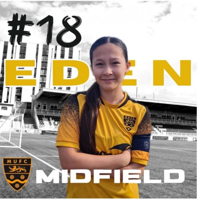 Thông tin về cầu thủ nữ Việt kiều này được Vietnam Football Scout chia sẻ gần đây. Eden J, cô gái trẻ có nguồn gốc sinh ra từ Nha Trang và lớn lên ở Anh, sinh ra và đang học lớp 8 tại Maidstone, Anh Quốc. Cô là đội trưởng của đội U13 CLB Maidstone United, một câu lạc bộ tham gia giải South East Counties Women’s League.