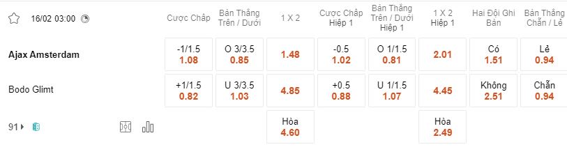 Soi kèo châu Á Ajax vs Bodo Glimt