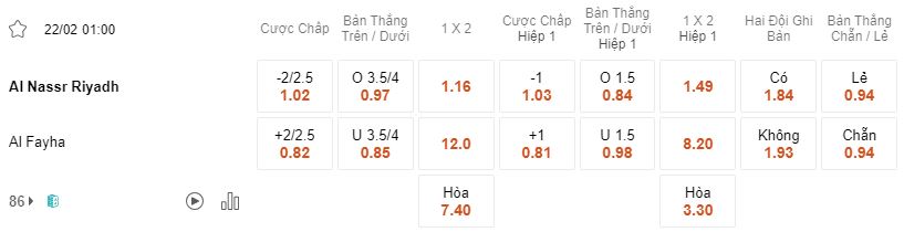 Soi kèo châu Á Al Nassr vs Al Fayha
