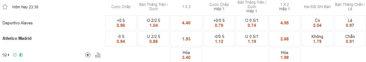 Soi kèo châu Á Alaves vs Atletico Madrid