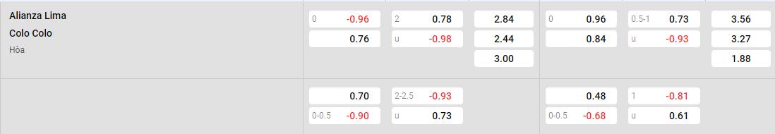 Soi kèo Châu Á Alianza Lima vs Colo Colo