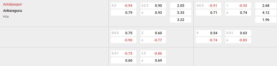 Soi kèo Châu Á Antalyaspor vs Ankaragucu