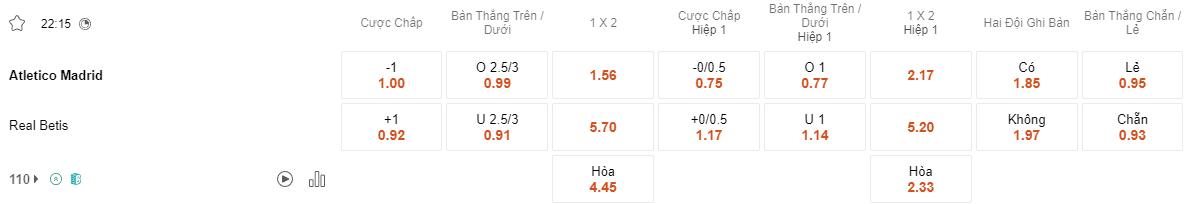 Soi kèo hiệp 1 Atletico Madrid vs Betis