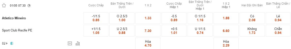 Soi kèo châu Á Atletico Mineiro vs Sport Racife