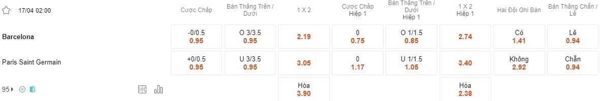 Barcelona đã thể hiện lối chơi hiệu quả trong giai đoạn đầu trận, với tỷ lệ sở hữu bóng và số lượng cơ hội tấn công tốt. PSG dù có sức mạnh hàng công đáng gờm, nhưng có thể gặp khó khăn khi phải đối diện với sức ép từ đội chủ nhà. Trong trận lượt đi, Barcelona đã thể hiện sự chủ động khi dẫn trước PSG ngay ở phút thứ 37 của trận đấu. Mặt khác, PSG đã khiến bet thủ ôm hận trong ⅘ lần mở kèo gần đây.