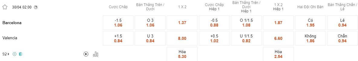 Soi kèo hiệp 1 Barcelona vs Valencia