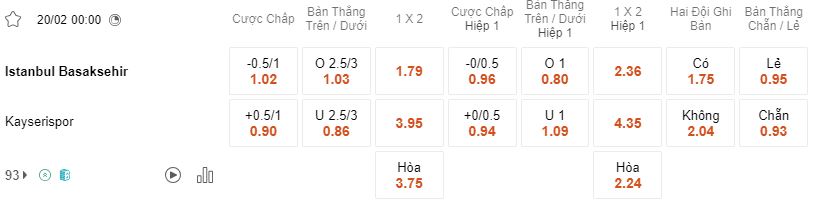 Soi kèo hiệp 1 Basaksehir vs Kayserispor