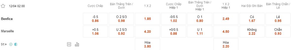 Soi kèo hiệp 1 Benfica vs Marseille