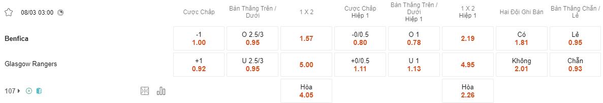 Benfica đã gặp nhiều khó khăn trong thời gian gần đây, đặc biệt là sau trận thất bại nặng nề trước Porto. Mặc dù họ có lợi thế sân nhà, nhưng việc đối mặt với một Rangers đầy tự tin sẽ không dễ dàng. Sự tự tin của Benfica cũng đã bị ảnh hưởng sau loạt trận thất vọng gần đây, và họ sẽ cần phải phục hồi tinh thần nhanh chóng để giữ vững đẳng cấp của mình. Cửa cược của họ cũng khiến bet thủ ôm hận trong 3/4 lần mở kèo gần nhất.