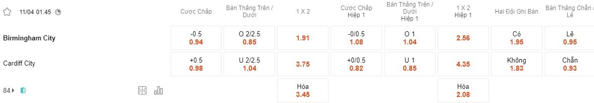 Soi kèo châu Á Birmingham vs Cardiff