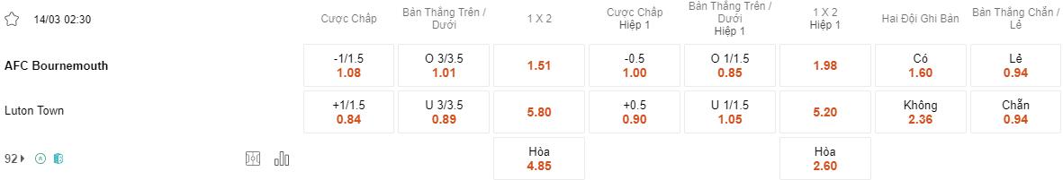 Soi kèo châu Á Bournemouth vs Luton