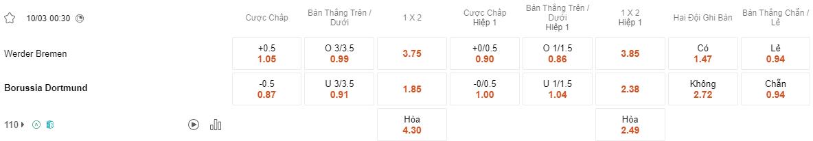 Soi kèo hiệp 1 Bremen vs Dortmund