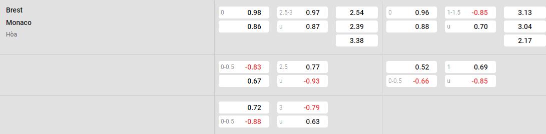 Soi kèo Châu Á Brest vs Monaco