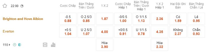 Brighton với sự ổn định và sức mạnh trên sân nhà, sẽ nắm giữ ưu thế và tạo ra áp lực lớn lên khung thành đối phương từ những phút đầu tiên. Với sự hỗ trợ từ các cầu thủ như Facundo Buonanotte và Danny Welbeck, Brighton có khả năng tạo ra những cơ hội nguy hiểm và ghi bàn trong hiệp 1. Everton dù có thể sẽ chơi cẩn thận, nhưng khó lòng cưỡng lại sức tấn công mạnh mẽ của đội chủ nhà.