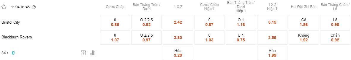 Soi kèo hiệp 1 Bristol vs Blackburn