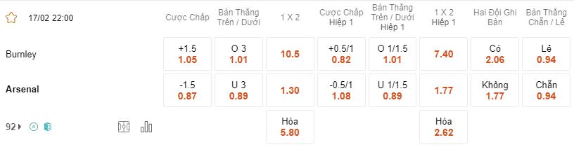 Soi kèo hiệp 1 Burnley vs Arsenal