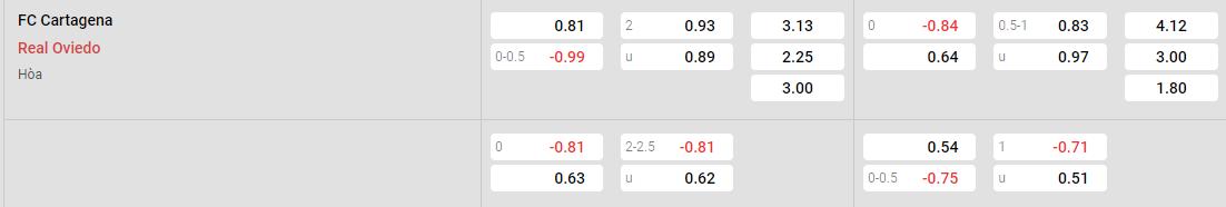 Chuyến hành quân xa lần này tới sân đối thủ, Oviedo rõ ràng có duyên làm thủng lưới đối thủ hơn. Mặc dù vậy, hàng công của họ cũng chưa thể hiện tốt. Với việc chỉ có 2/5 trận gần nhất ghi được 2 bàn thắng. Trong khi đó, Cartagena lại đang chơi phòng ngự thiếu chắc chắn. Do vậy, trận đấu này sẽ xuất hiện nhiều hơn 2 bàn thắng.