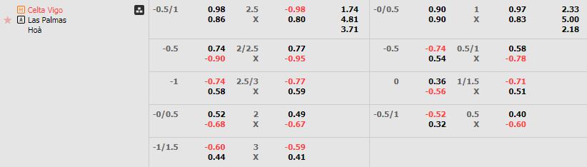 Với 40% tỷ lệ thắng kèo sau 5 trận gần nhất, Celta Vigo đang không phải là cửa đặt mang lại nhiều lợi nhuận. Tuy nhiên, khả năng thắng kèo của Celta Vigo vẫn chắc chắn hơn. Khi mà có 3/4 trận mở kèo gần nhất giữa hai đội, họ đã thắng cược. Do đó, với việc chấp 0.75 bàn trước Las Palmas, các chuyên gia đang đánh giá cao Celta Vigo sẽ là lựa chọn an toàn hơn.