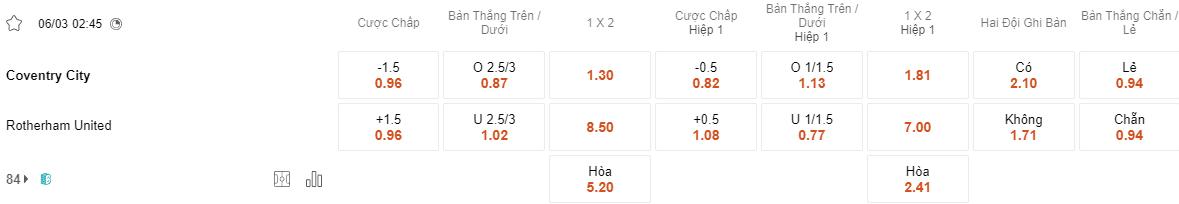 Soi kèo châu Á Coventry vs Rotherham