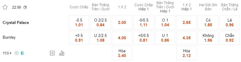 Soi kèo hiệp 1 Crystal Palace vs Burnley