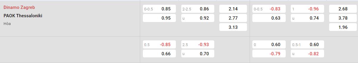 Soi kèo Châu Á Dinamo Zagreb vs PAOK