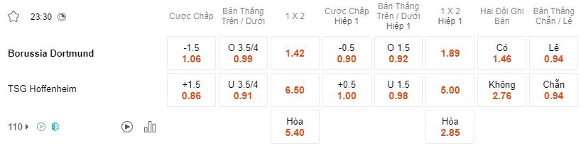 Soi kèo hiệp 1 Dortmund vs Hoffenheim