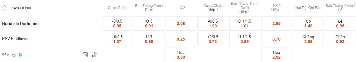 PSV mặc dù đang có phong độ tốt ở giải VĐQG Hà Lan, nhưng họ sẽ đối diện với thách thức lớn khi phải làm khách tại Signal Iduna Park. Đội bóng này đã gặp khá nhiều khó khăn khi chơi trên sân khách tại Đức trong quá khứ. Việc phải đối đầu với một Dortmund đầy tự tin sẽ là một thử thách lớn. Tỷ lệ thắng kèo ở cửa cược của họ chỉ vỏn vẹn 20% trong 10 trận gần nhất.