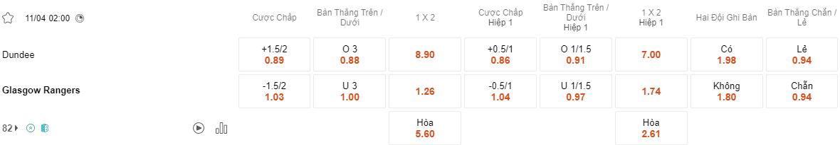 Khi nhìn vào lịch sử gặp gỡ gần đây giữa hai đội, Rangers có ưu thế rõ ràng. Họ đã thắng Dundee trong 8 trận gần nhất, với tỷ số tổng cộng là 22-2. Ngoài ra, Rangers cũng có thành tích tốt khi thi đấu trên sân khách, chỉ để thua ở 3 trên tổng số 14 trận đấu tại giải VĐQG Scotland mùa này. Do đó, đội khách đang là lựa chọn sáng giá lúc này.