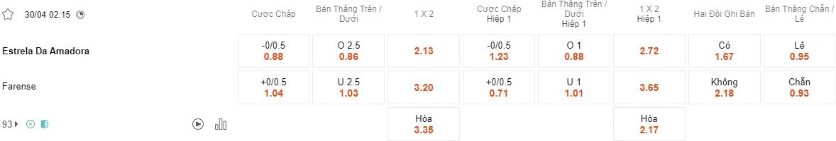 Farense đã thể hiện sự ổn định và hiệu suất cao trong hiệp 1 của các trận đấu gần đây. Trong 6 trận gần nhất, họ đã dẫn trước trong hiệp 1 trong 4 trận. Trong khi đó, Estrela đã gặp khó khăn trong việc duy trì sự ổn định trong hiệp 1 của các trận đấu gần đây. Cửa cược của họ đã khiến bet thủ ôm hận trong 4 lần mở kèo hiệp 1 gần đây.