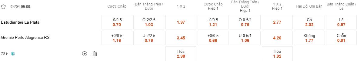 Tỷ lệ kèo Estudiantes vs Gremio