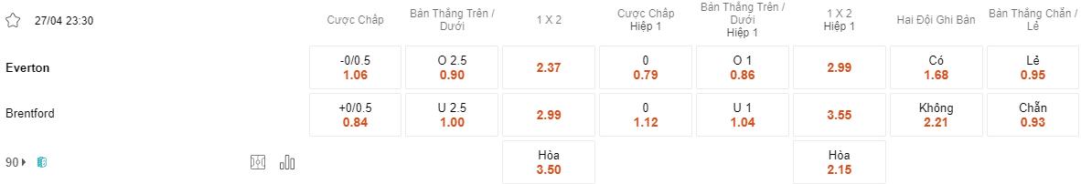 Everton đã thể hiện sức mạnh của mình trong hiệp 1 với việc ghi bàn trước giờ nghỉ giữa giờ trong ¾ lần ra sân gần nhất tại Premier League. Ngoài ra, Everton cũng đã có thành tích tốt khi chơi tại sân nhà Goodison Park, nơi họ đã giành chiến thắng trong cả 3 trận gần đây. Sự ổn định này có thể giúp Everton khởi đầu trận đấu một cách mạnh mẽ và tạo ra sức ép lên hàng thủ của Brentford từ những phút đầu tiên.