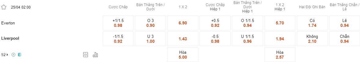 Soi kèo Everton vs Liverpool lúc 2h00 ngày 25/4/2024