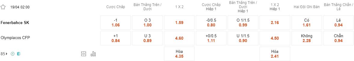 Soi kèo châu Á Fenerbahce vs Olympiakos
