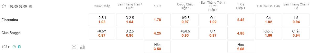Soi kèo hiệp 1 Fiorentina vs Club Brugge