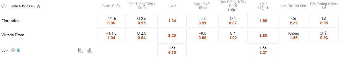 Mặc dù Fiorentina được đánh giá cao hơn về chất lượng đội hình và có lợi thế sân nhà, nhưng Viktoria Plzen không phải là một đối thủ dễ chơi. Viktoria Plzen có lợi thế về khả năng phòng ngự và sự khó chịu trong các tình huống phòng thủ. Cửa cược của họ đã giúp bet thủ vượt ải thành công trong 2 lần mở kèo gần đây.