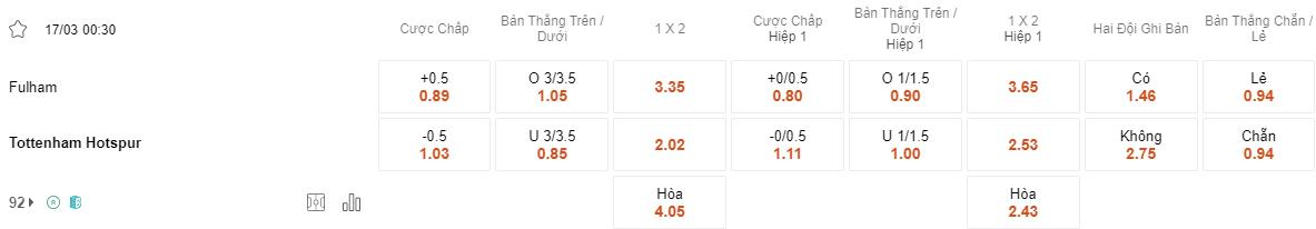 Soi kèo hiệp 1 Fulham vs Tottenham