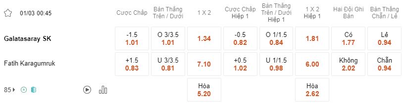 Soi kèo hiệp 1 Galatasaray vs Karagumruk