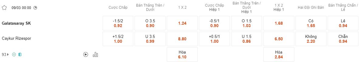 Soi kèo hiệp 1 Galatasaray vs Rizespor