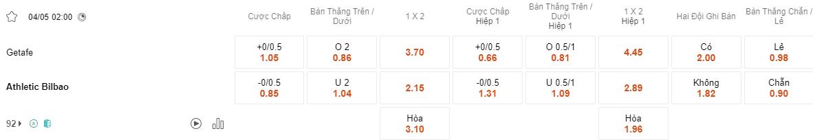 Getafe đã thể hiện sự mạnh mẽ trên sân nhà, đặc biệt trong giai đoạn đầu trận. Họ đã ghi bàn ở hiệp 1 ở ⅘ lần đón gần nhất, và cũng đã dẫn trước ở 3 trận trong số đó. Trong khi đó, Bilbao đã gặp khó khăn trong việc bắt kịp đối thủ ngay từ đầu trận. Họ thường phải chờ đến hiệp 2 mới có thể ghi bàn hoặc tạo ra cơ hội nguy hiểm. Cửa cược của họ đã khiến bet thủ ôm hận trong 4/5 lần mở kèo hiệp 1 gần đây.