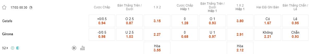 Soi kèo Getafe vs Girona lúc 0h30 ngày 17/3/2024