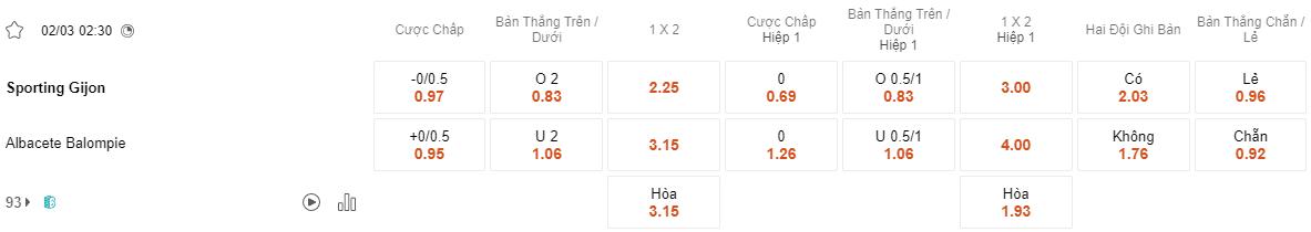 Dự đoán tỷ số Gijon vs Albacete
