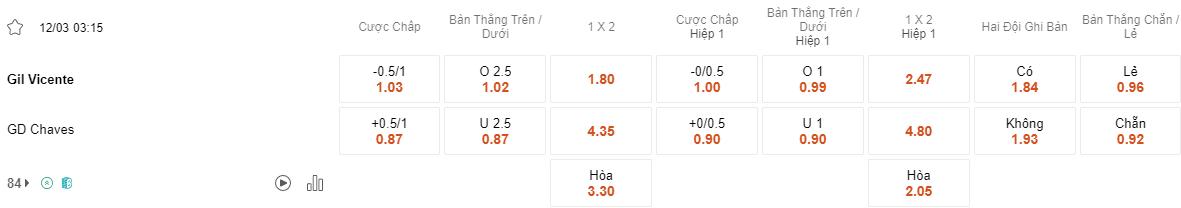 Soi kèo hiệp 1 Gil Vicente vs Chaves