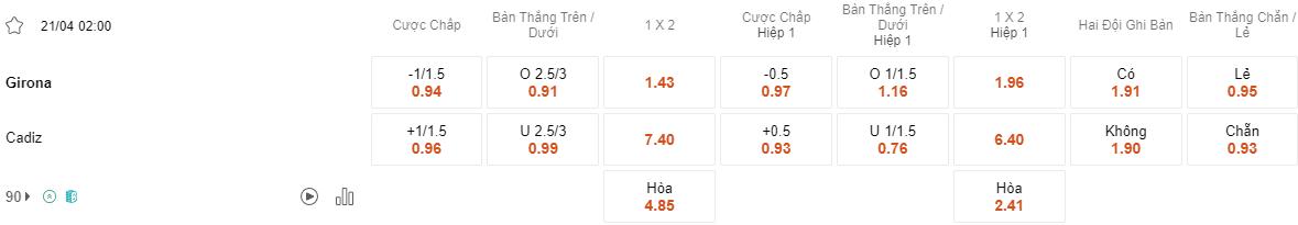Girona đã thể hiện khả năng kiểm soát thế trận chặt chẽ tại sân nhà. Họ đã giữ sạch lưới trong 3/4 lần đón khách gần nhất. trong khi Cadiz thường có khuynh hướng chơi phòng ngự khi thi đấu xa nhà. Theo thống kê từ chuyên gia Bóng đá INFO, toàn bộ 9 lần hành quân gần nhất của Cadiz tại Serie A đều không có quá 2 bàn được ghi. Do đó, kèo Xỉu (Under) đang là một lựa chọn hợp lý trong trận đấu sắp tới.
