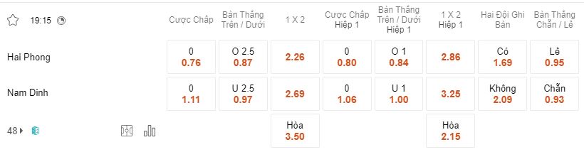 Hải Phòng thường cho thấy sức mạnh tại sân nhà và có khả năng tấn công mạnh mẽ từ những phút đầu tiên của trận đấu. Trong khi đó, Nam Định có thể gặp khó khăn khi phải đối mặt với sức ép từ phía Hải Phòng và cảm giác chơi trên sân khách cũng có thể ảnh hưởng đến họ. Do đó, việc chọn Hải Phòng thắng kèo trong hiệp 1 có thể là một lựa chọn hợp lý dựa trên sự ổn định và sức mạnh của đội chủ nhà.