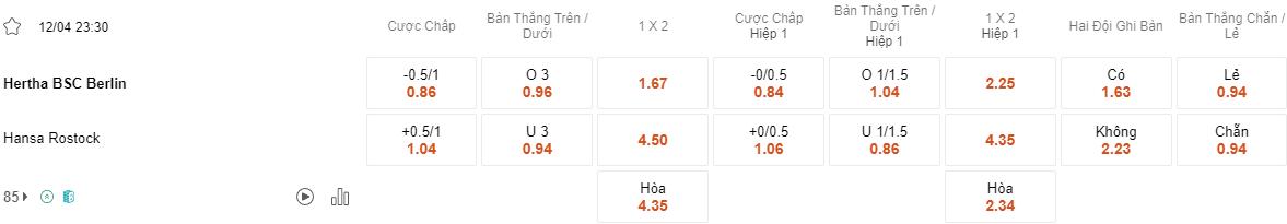Soi kèo hiệp 1 Hertha Berlin vs Hansa Rostock