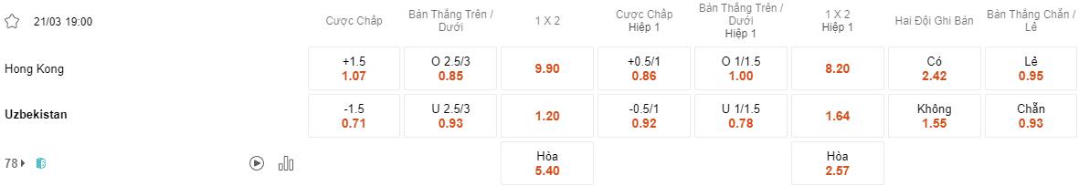 Soi kèo hiệp 1 Hồng Kông vs Uzbekistan