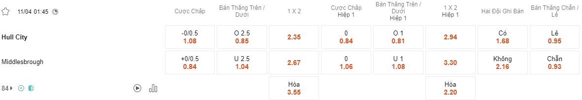 Soi kèo hiệp 1 Hull vs Middlesbrough